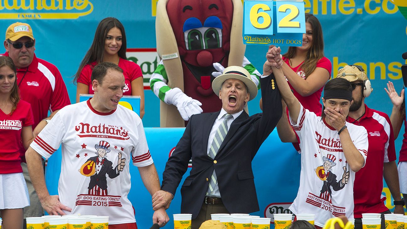 Nathan S Hot Dog Eating Contest Joey Chestnut Scores 12th Win Devouring 71 Hot Dogs Abc11 Raleigh Durham