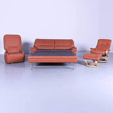 Amazon De Himolla Sleepoly Designer Schlafsofa Garnitur Orange Leder Funktion Zweisitzer Hocker Sessel Echtleder 5005 Minimale Gebrauchsspuren